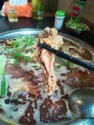 接下来,重点来了——兔子。这兔子可不是随便抓来的,而是经过精心挑选的优质兔子。炖煮过程中,火候掌握得恰到好处,肉质鲜嫩,口感细腻。每一口下去,都能感受到兔肉的鲜美和锅底的香浓,简直是味蕾的盛宴。